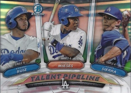 Here's a final look at the Dodgers' cards found in packs of 2018 Bowman Baseball. This time we take a peek at the Bowman Scouts Top 100 insert set, #BowmanTrending, Sterling Continuity, ROY Favorites and the Talent Pipeline cards.