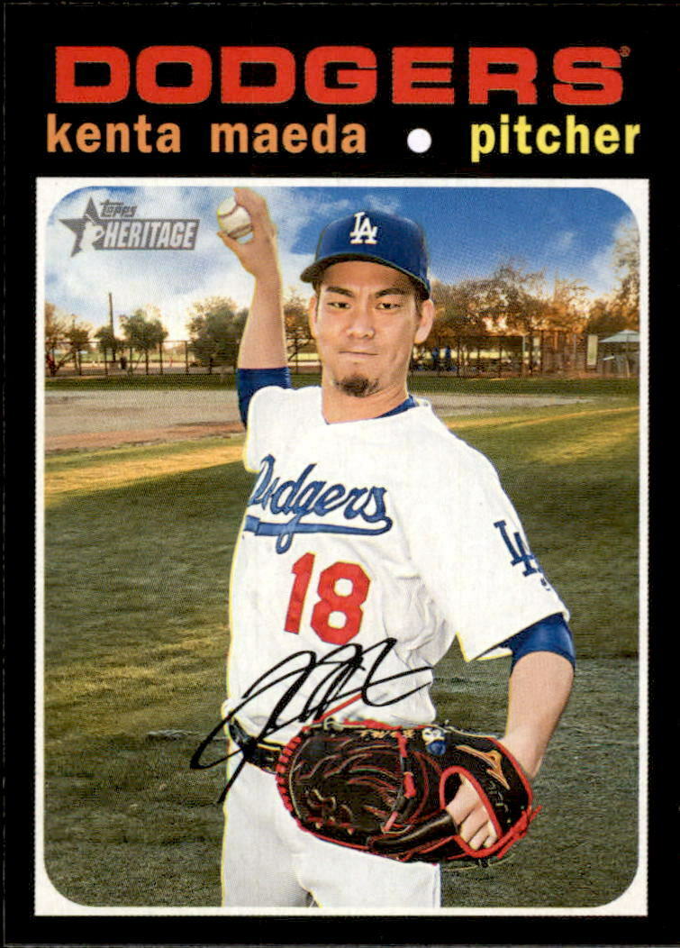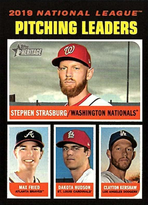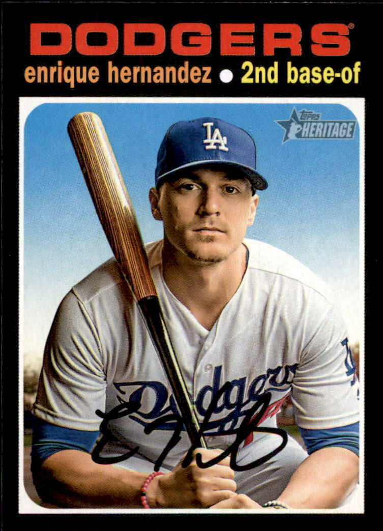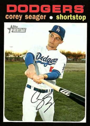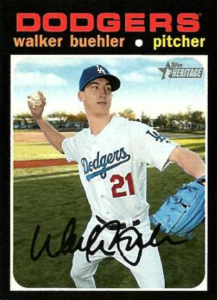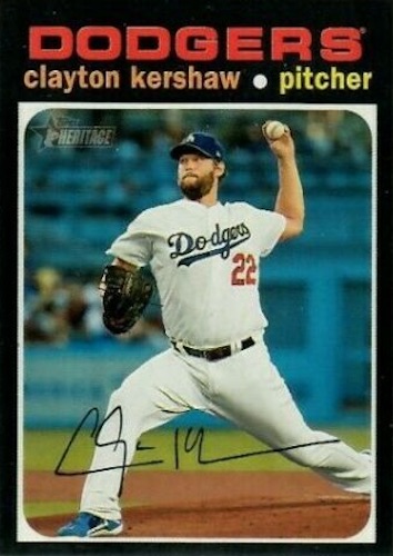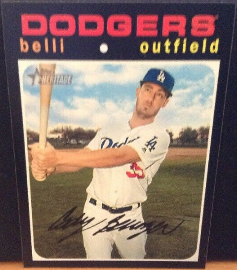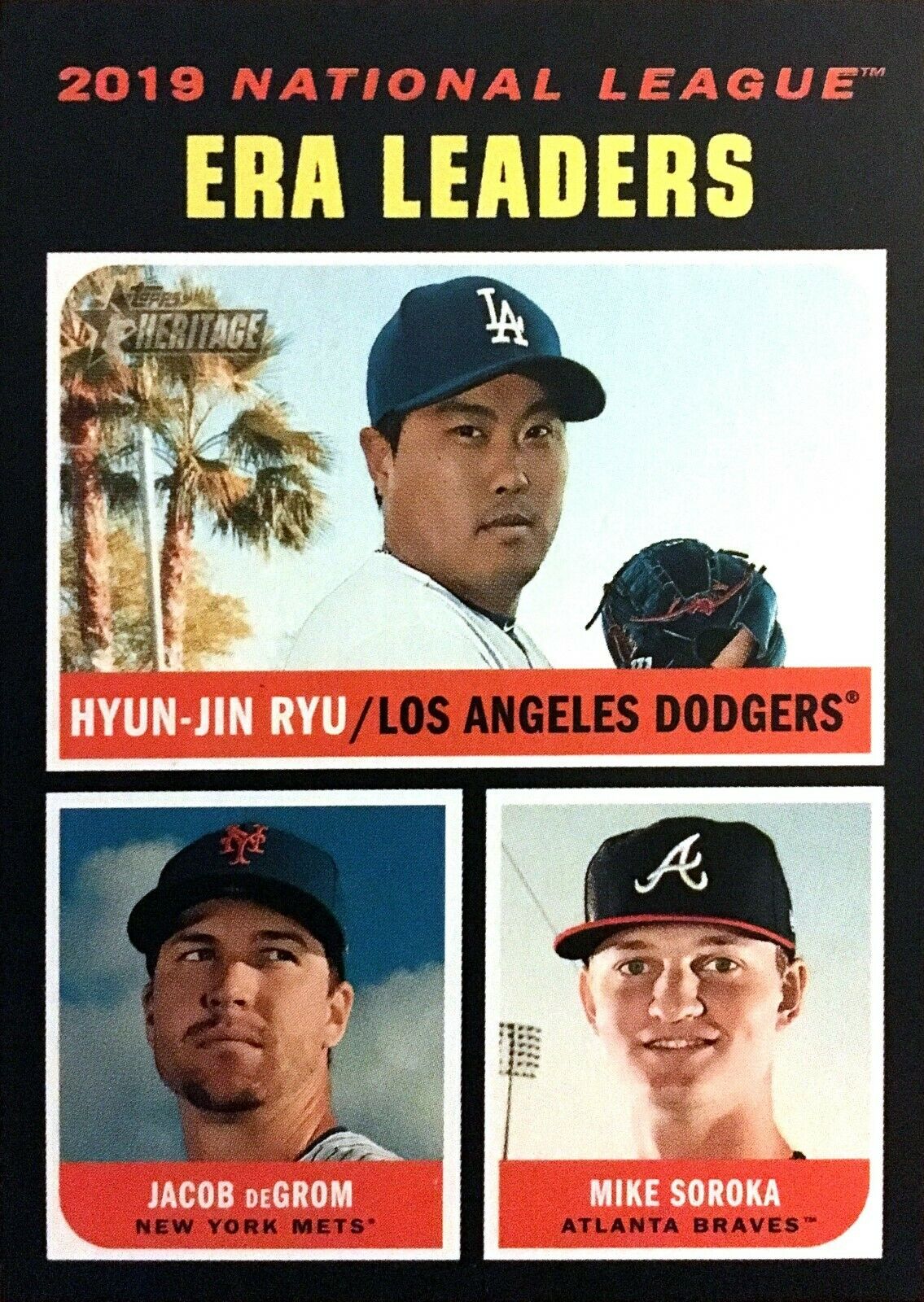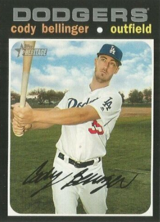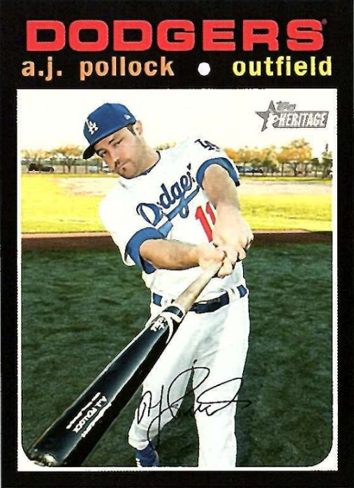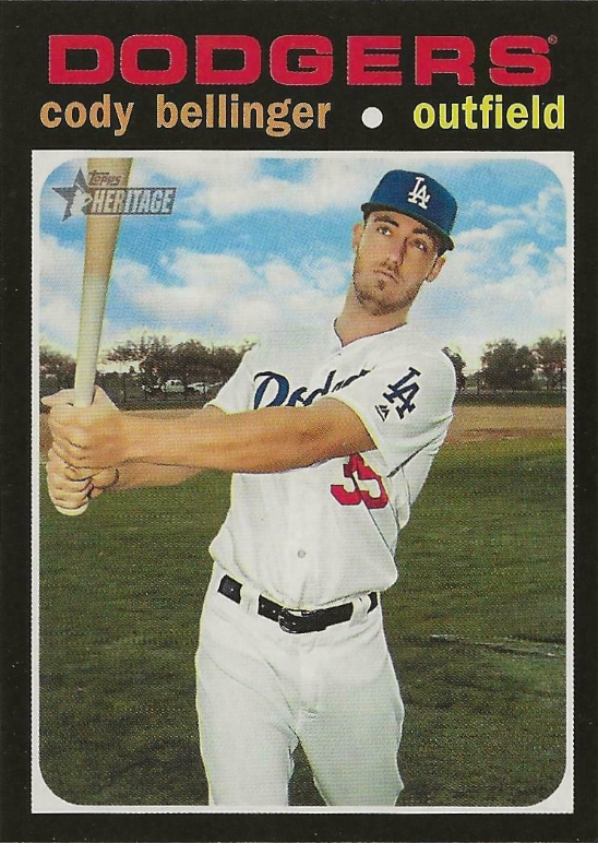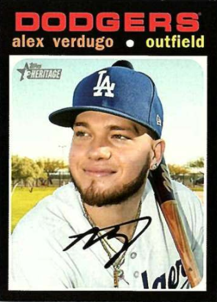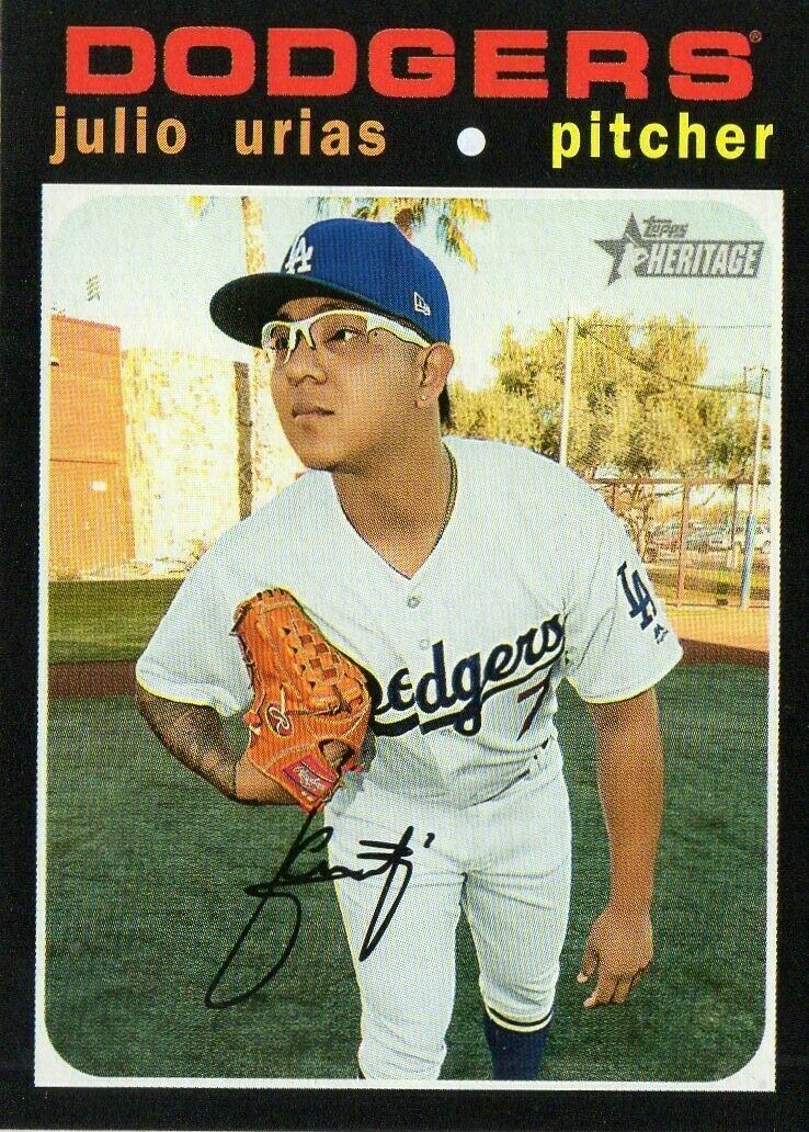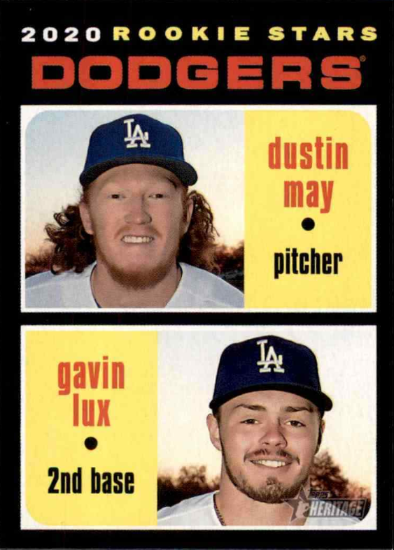 Here is a look at all the Dodger base cards found in packs of Topps 2020 Heritage Baseball card brand. There are 25 Dodger cards available -- including four "League Leaders" and two "Rookie Stars" cards. Go here for a complete checklist. I've also included pics of all the known variations (up until this point in time), as well, and checklist of all the Chrome, Mini and French parallel cards.