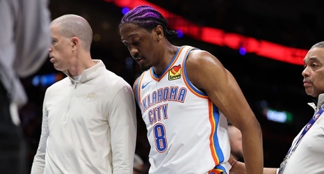 MIAMI -- Oklahoma City guard Jalen Williams left midway through the second quarter of the Thunder's 122-120 loss in Miami on Saturday night, grabbing at his right hamstring after trying to contort his body for an awkward pass.