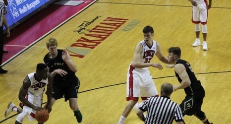 The Runnin’ Rebels began the season strong with a win against the Cal Poly Mustangs, 74-72, on Fri., Nov. 13. Before playing the national anthem, the Thomas & Mack held a moment of silence for the fallen people of Paris.
