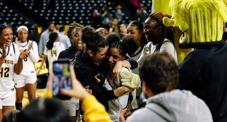Abby Cater hugged a fan as she walked into the Koch Arena tunnel, while members of the Shocker Sound Machine chanted "MVP, MVP."